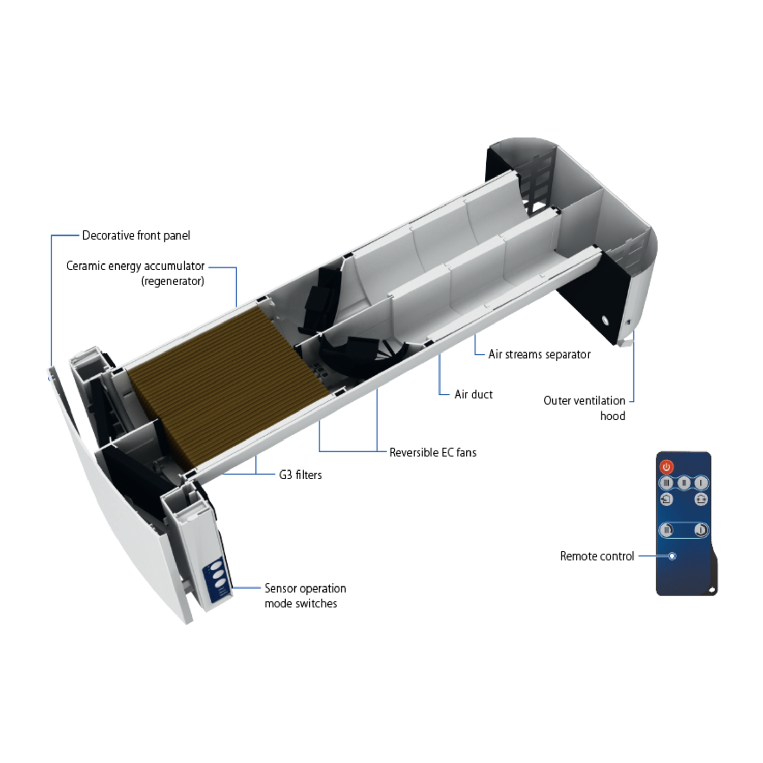 - Une efficacité inégalée par rapport aux autre échangeurs d'air: Récupère jusqu'à 88% de la châleur évacuée pour chauffer l'air introduit