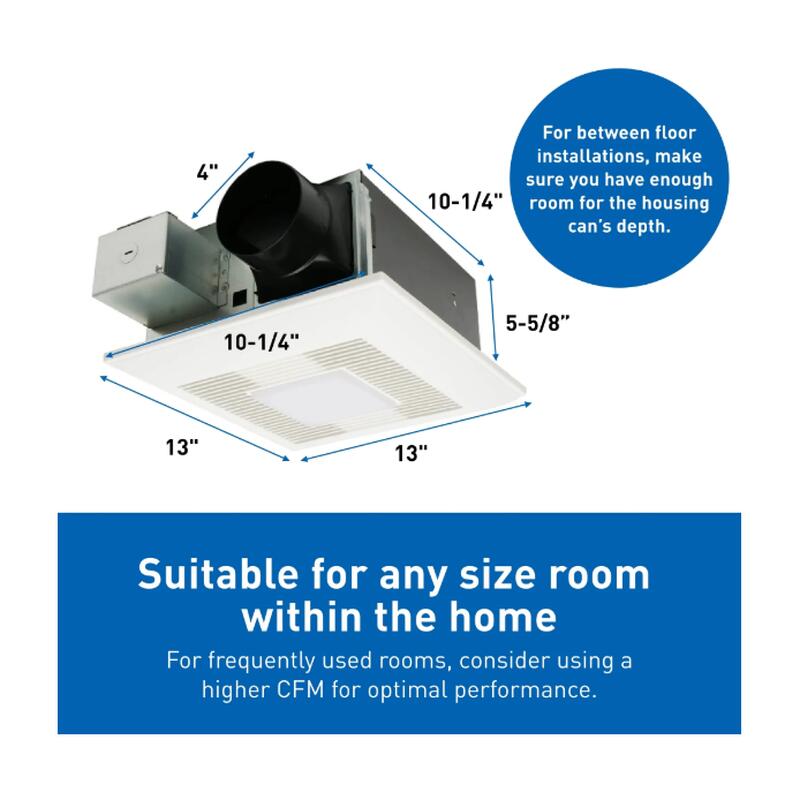 Le ventilateur WhisperFit® CC avec éclairage LED à intensité variable et veilleuse est une solution de rénovation idéale. Son moteur ECM (CC) écoénergétique intégré avec sélecteur de débit d'air Pick-A-Flow® vous permet de sélectionner le débit d'air souhaité (50, 80 ou 110 pi³/min). Son support Flex-Z Fast® à charnière simple, ses guides d'alignement préinstallés et son clip temporaire permettent une installation flexible, rapide et facile. Ce ventilateur est idéal pour la ventilation des salles de bains et est conforme aux normes et codes les plus récents.